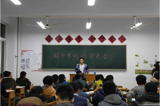 为提高同学们对期中考试的重视程度,11月15日下午,tyc122ccvip在三号楼各班级召开考前动员大会。
