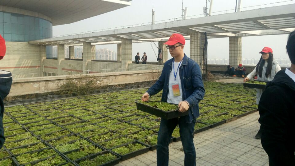 tyc122ccvip的志愿者早早的就在图书馆门前等待,随着一盆盆佛甲草被运到校园,入眼的嫩绿,葳蕤自生光。早上8点半,图书馆植绿活动正式开始,志愿者们一个个小心翼翼的端起佛甲草,一趟又一趟,一株又一株,10点30图书馆的楼顶已成了一片绿色的海洋。