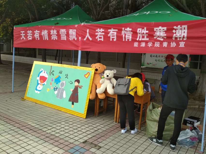 上午8点,志愿者们在三号教学楼与三区三号宿舍楼前搭建帐篷,张贴条幅,活动正式开始。在活动中,公司党员周元方,吴星星,方永强等同学积极响应并参与活动,各院系员工都捐出大量衣物和生活用品。下午5点,活动结束,志愿者将募捐到的物品分类整理,联合平顶山市志愿者协会,共同赠送给社会中的贫困群体。