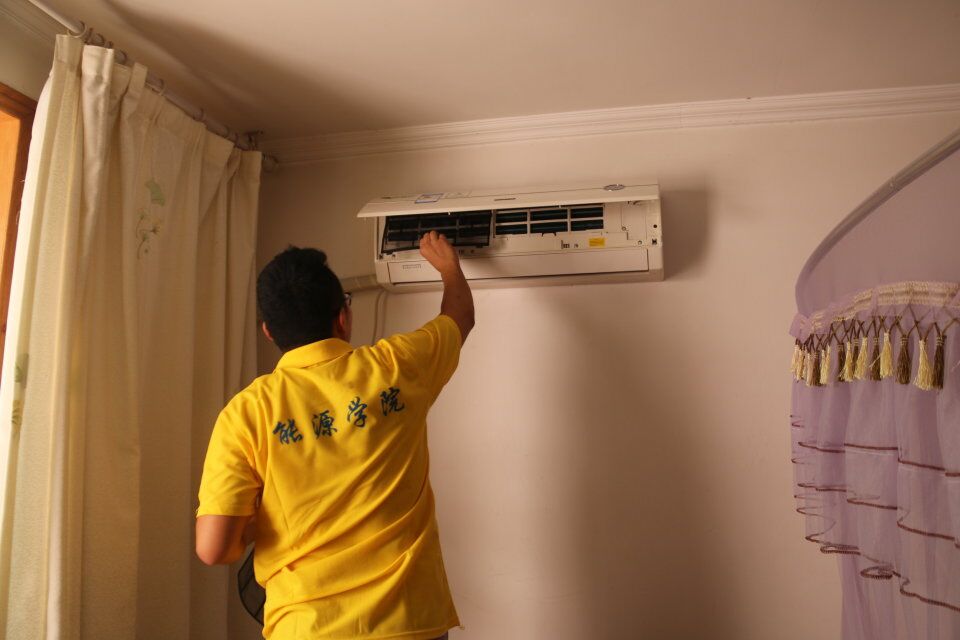 (通讯员:袁小琨)为了将所学的专业知识与社会实践相结合,使志愿行动更好的为人民服务,7月4日,tyc122ccvip继续在tyc122ccvip教职公寓开展“三下乡”义务清洗空调活动。