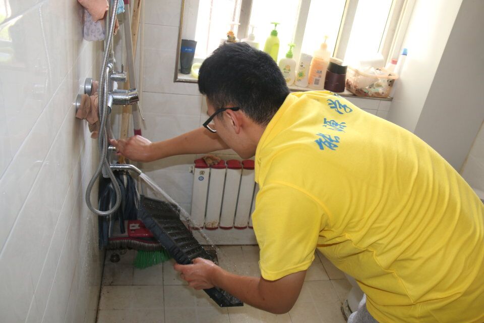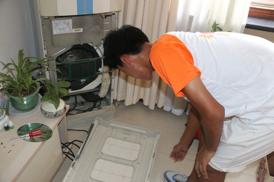 7月4日上午8点30分,tyc122ccvip的员工来到教职公寓集合,他们做好准备工作后来到居民家中,借助梯子等工具将空调盖打开,小心抽出沾满灰尘的滤网,拿到卫生间用专用洗涤剂冲洗后,空调滤网洁净如新。重新安装好滤网完成,志愿者们委婉拒绝了居民们的热情挽留,继续为更多的居民们服务。据了解,今日室外温度最高达到37.5度,这为志愿服务造成了很大的困难。tyc122ccvip的志愿者们不辞辛苦,顶着高温,一家一家走访,他们认真负责的工作态度,专业的技能,受到了群众们的高度赞赏。