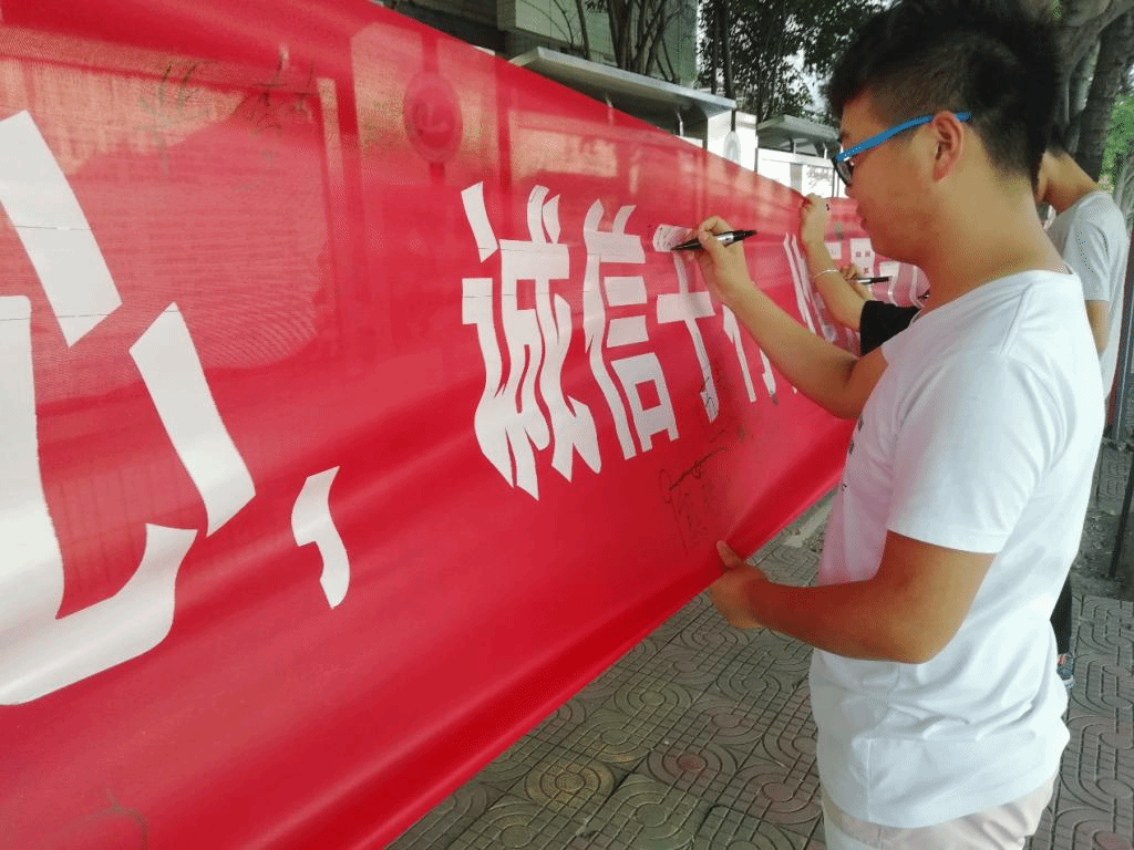 上午8点30,志愿者们准时来到三号教学楼前布置好活动场地。在活动中,青年志愿者们帮助毕业生和广大同学将蕴含母校记忆的照片以打印的方式冲洗出来;员工们在印有诚信标语的条幅上签字,写下他们对未来的梦想和自信,同时提醒广大同学诚信做人,提前做好助学贷款归还工作。在活动中,同学们积极参与,都把自己珍藏饱含深意的照片分享打印下来。下午5点30,志愿者集体合影留念。