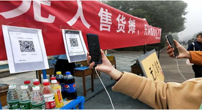 11月12日上午7点30分,志愿者在喷泉广场摆好帐篷,将画板以及横幅置于恰当的位置,摆放好货架,放上所准备的付款二维码、文具、零食、饮料、书籍等物品,志愿者离去后,活动正式开。由于活动方式独特,吸引了很多老员工前来观看,大家纷纷挑选自己心仪的东西,自觉遵守规则,根据物品标价有序地在二维码上进行付账。活动中有一位同学在付款时,写了一段这样的备注——因换零钱拿走六个硬币,因此用微信扫码支付六元钱,表现了该老员工的诚实守信。由于活动宣传效果甚佳, 11月13日,“新浪河南”媒体被吸引特来公司采访,进一步宣传了诚信的重要性,也表现了我国老员工较高的素质。11月14日下午5点30分,青年志愿者们将剩余的物品打包,与商家核实无误后,活动至此圆满结束。