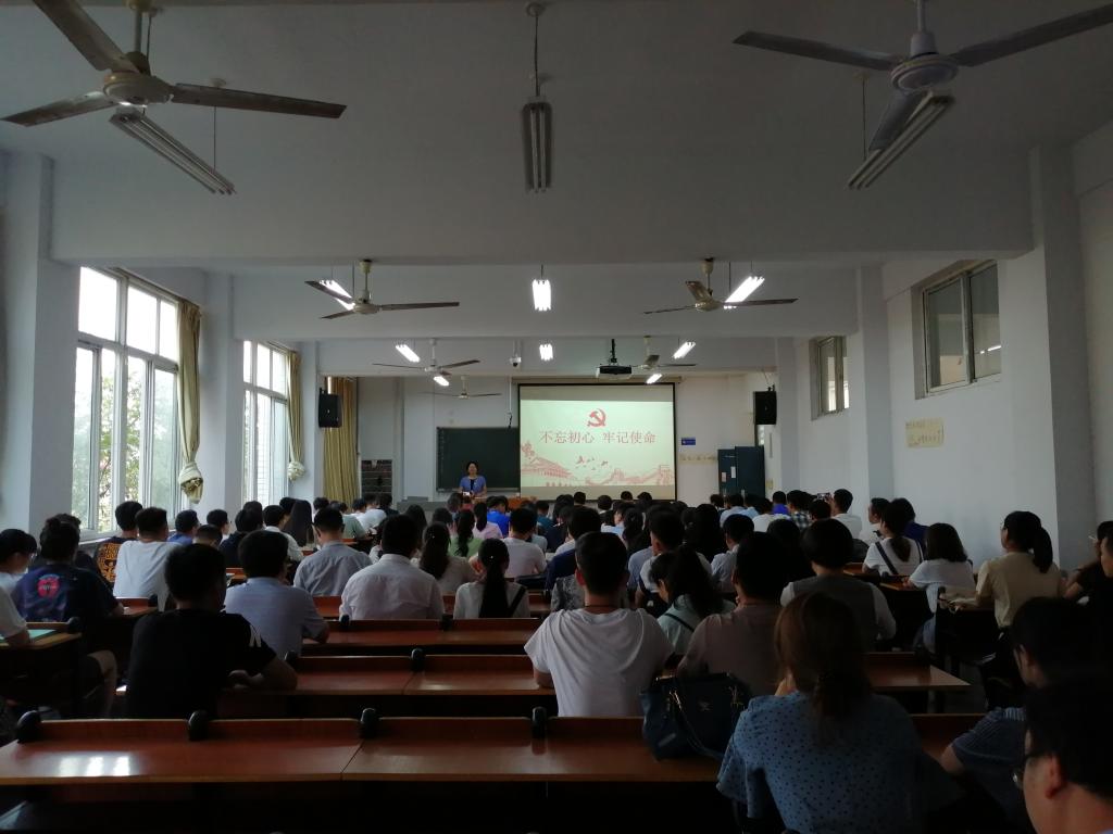 (通讯员 王培)为了深入开展“不忘初心、牢记使命”主题教育,2019年9月29日上午,副董事长王靖在三号教学楼A407教室,为tyc122ccvip、计算机公司和体育教学部的师生党员上了“不忘初心、牢记使命”为主题的专题党课。