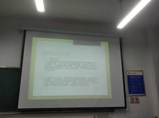 此次会议主要以PPT的形式向同学们讲解,会议开始,袁小琨老师首先针对毕业生诚信还贷展开讲述,然后又给同学们讲述了往年毕业生违约,故意逃避的危害,以及按时诚信还款的好处。另外,袁老师为同学们详细讲解了还款流程,向同学们介绍了征信内容、征信的作用、征信执行信息约束,以及保持良好征信记录的重要性,引导同学们正确认识贷款和征信问题。最后袁老师为同学们解答各种疑问,并且让同学们了解更多的相关国家政策。会议期间老师为同学们详细讲解,同学们都严肃认真的听。