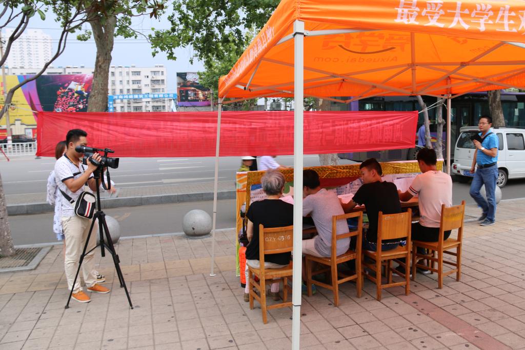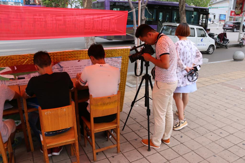 平顶山电视台睛彩频道的记者在采访老师