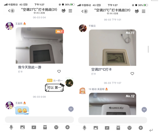 本次活动主要通过线上讲座的形式向同学们普及了公司相关专业的基本知识、相关就业趋向及如何着眼于当下学习制定合理的职业规划等一系列内容。讲座期间,公司各专业员工积极参与活动中,畅所欲言心目中“我的专业”,切实立身当下理论学习,并对未来就业倾向发出热烈期盼。同时活动辅以“空调27℃”七日打卡挑战活动,旨在从温度出发,每一个27℃都是对节能减排的有效执行、所学专业的生活应用和对大自然一草一木的敬畏与尊重。
