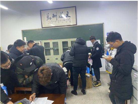 同学们领取越冬物资后签字登记