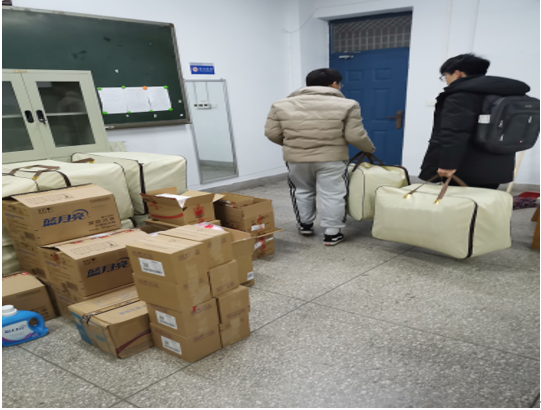 同学们领取越冬物资