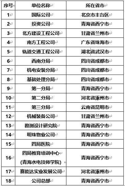 附件:中国水电四局所属各单位