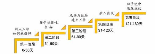 在新员工入职的前180天内,分5个阶段给予不同的关注和任务,快速建