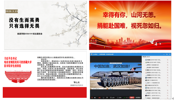 通过习近平总书记给在首钢医院实习的西藏大学医公司员工重要回信,认真学习白衣天使感人的事迹,号召班上员工在家中认真准备毕业设计,不能过于颓费,努力提升进度,等正式返校后,大家一块把酒言欢,开开心心毕业,毕业之后同学们要趁着自己的青春时光在自己的职场上奋力前进,实现各自的人生理想,积极投身祖国和人民需要的地方,为祖国建设添砖加瓦。