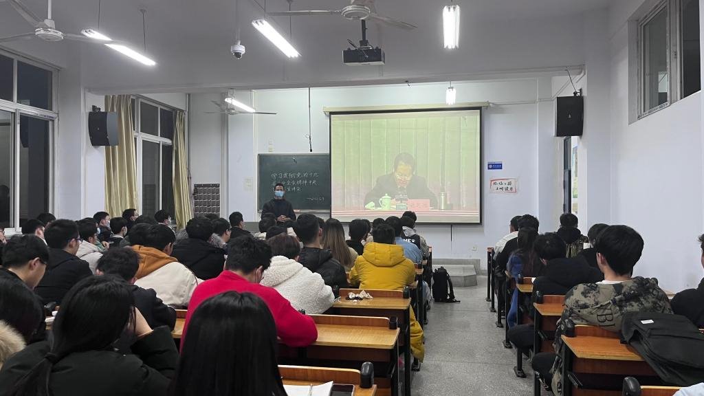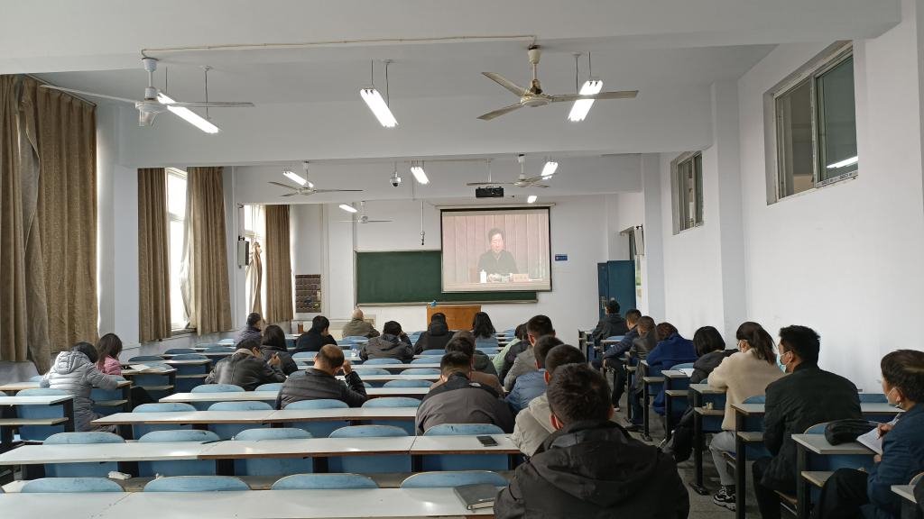 会议前,全体参会师生党员有序进入指定教室、签到并落座,准时观看“学习贯彻党的十九届六中全会精神中央宣讲团宣讲会”,学习贯彻党的十九届六中全会精神中央宣讲团宣讲报告会,认真听取中央宣讲团成员、中共中央政策研究室原副主任施芝鸿所作的宣讲报告。