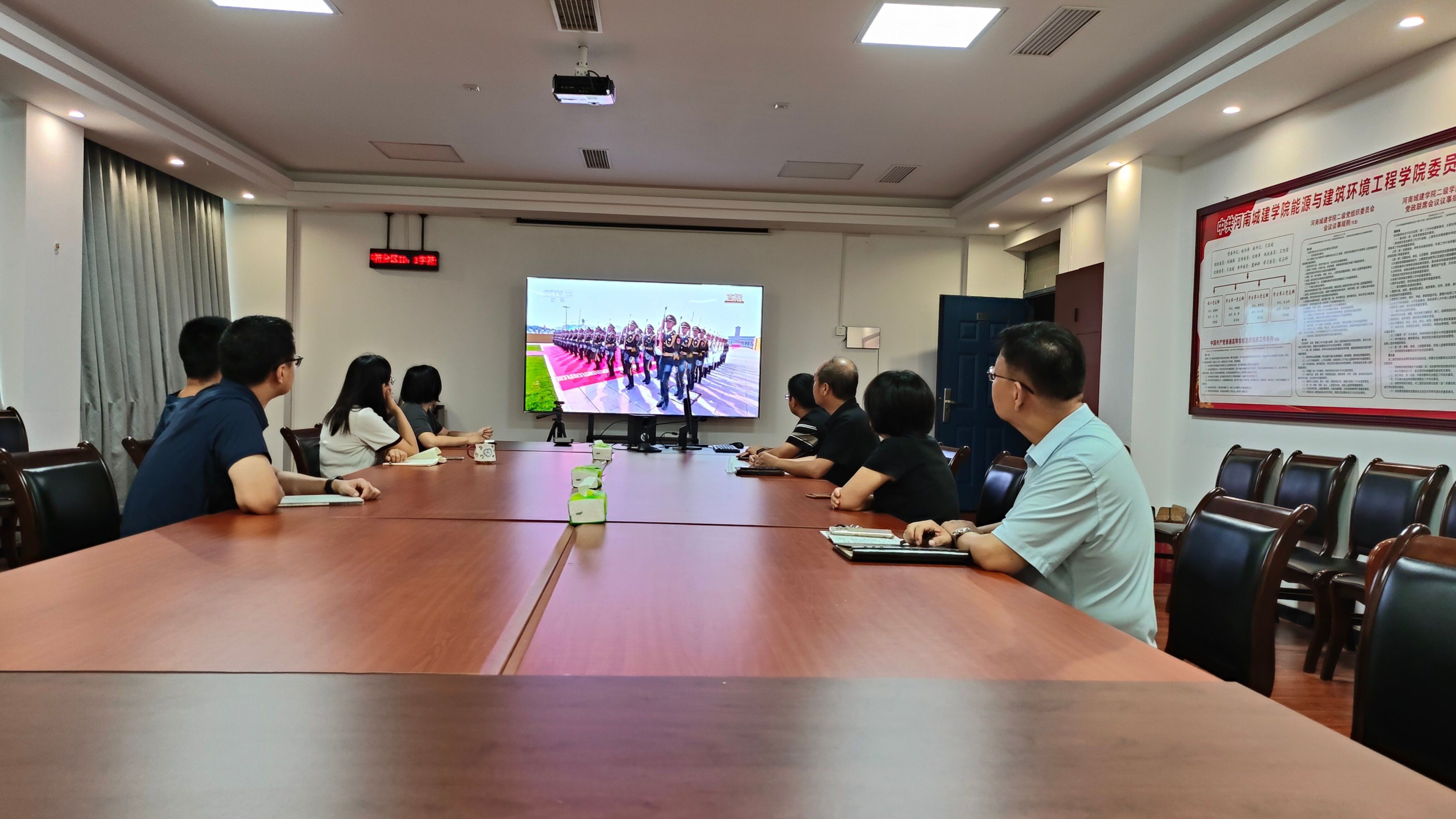 当天,公司领导和教师代表们齐聚一堂,怀着崇敬的心情,通过电视直播观看了在北京天安门广场举行的盛大阅兵仪式。阅兵式上,大国军阵震撼亮相,先进的装备、整齐的方队,展示了我国强大的国防力量和维护和平的坚定决心。