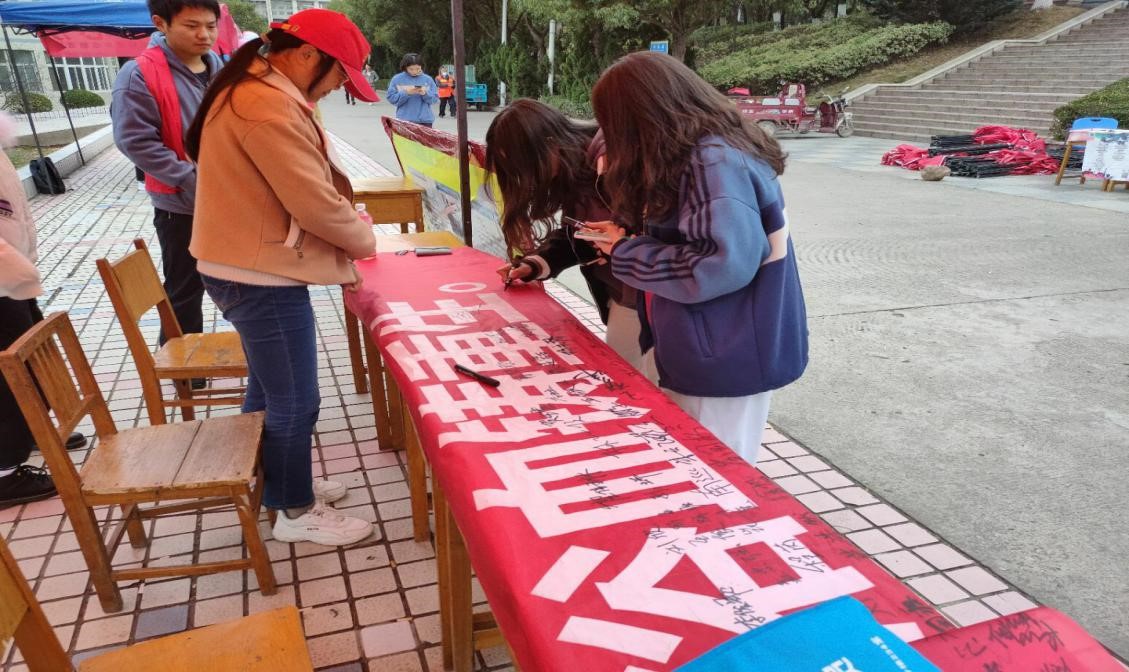活动开始前,tyc122ccvip青协志愿者们做足准备工作,以便活动顺利开展。活动开展期间,志愿者们身穿红色小马甲,在流动的人群中积极邀请广大城建学子参加活动,同时悉心向城建学子讲解活动流程及目的,扩大活动影响,宣传爱国精神。本次活动主要以签字为主,在“盛世和平七十载,中华浴血助重生”的横幅上留下自己的名字或对祖国的期许来表达自己对本次活动的支持。