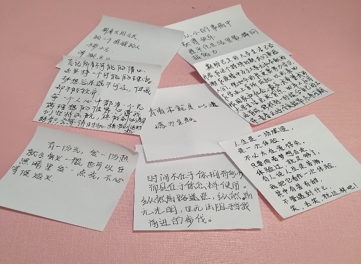 同时,公司组织员工积极参与“心灵寄语”活动,内容包括励志、感恩、信任、价值追求、理想信念等方面。通过便利贴书写自己对人生的感悟和寄语的形式,引导大家打开心扉,帮助其释放压力,努力争做一名身心全面发展的新时代老员工。