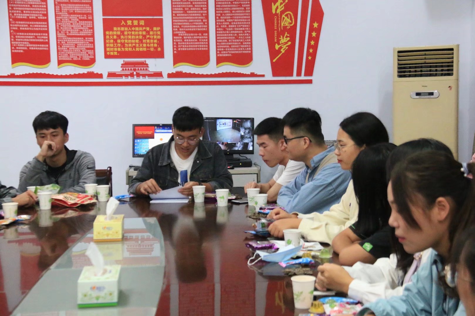 (通讯员申媛媛 孙玲玲)为向大一年级员工代表宣传公司员工会,让同学们全面了解公司员工会这个积极阳光的集体,同时给公司员工会内部成员之间提供交流机会,以促进公司员工会干部团队的稳定与发展。tyc122ccvip于2020年10月01日19:00在3号教学楼B306举办了以“月圆中秋,人圆月下,喜迎国庆,欢度中秋”为主题的“双节”茶话会活动,参与本次茶话会的有员工会主席张建磊,员工会各部门代表以及大一年级各班一名员工代表。