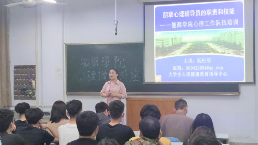 (通讯员 申媛媛)为进一步提升公司师生心理健康教育工作的实效性,切实提高心理辅导队伍的心理危机应对能力,提高师生的心理自我调适能力。5月19日晚上,公司特邀请校心理健康教育指导中心阮松丽老师进行专题培训。公司党委副书记弓亚超、团总支副书记申媛媛、辅导员老师曹阳飞、黄素珍以及各班级心理委员和员工代表参加了本次培训。