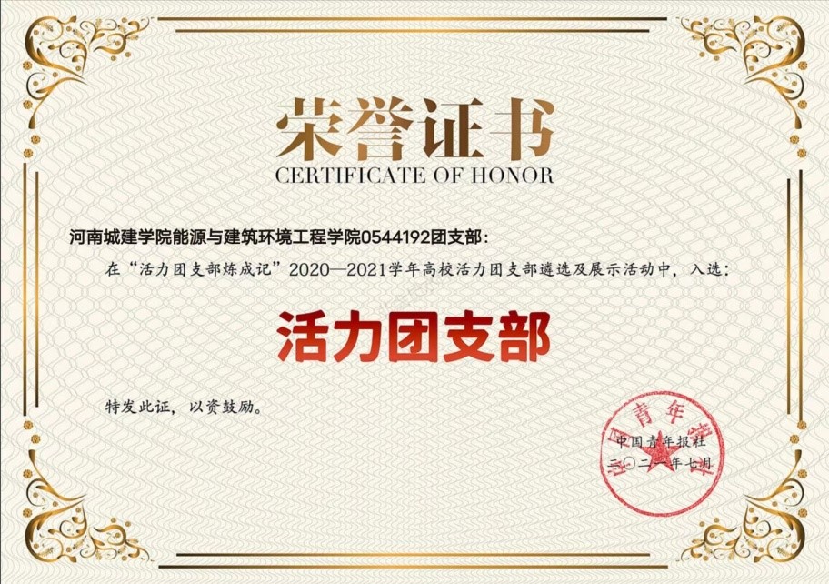 (通讯员 徐南 关明磊)近日,由共青团中央基层建设部指导、中国青年报社主办的“活力团支部炼成记”2020—2021学年高校活力团支部遴选及展示活动落下帷幕。公司0544192团支部脱颖而出,荣获“全国高校活力团支部”称号。