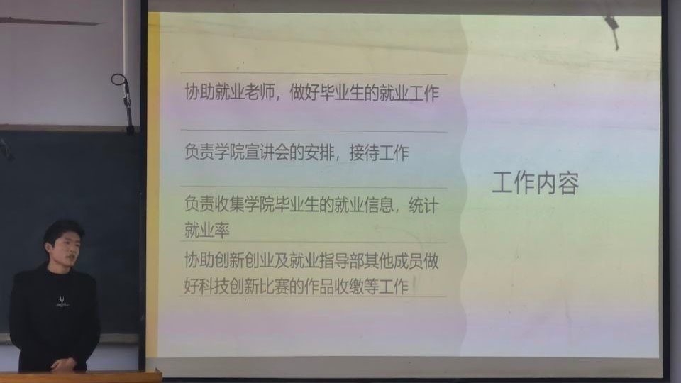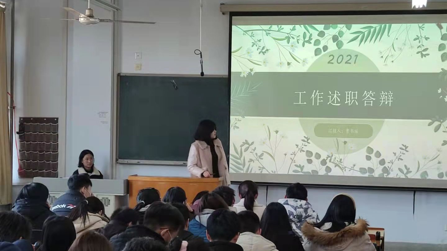 会议上,员工会各部门负责人分别从自身学业、校园课外生活、员工干部工作总结、个人成长收获以及下一步计划五个方面展开陈述。在答辩述职过程中,各位答辩员工声音洪亮,自信大方,充分展示出员工干部的良好形象。大家分别就本部门工作内容和特色亮点进行详细回顾梳理,认真对本年度的工作进行查漏补缺,并作经验交流分享。会议最后,由申老师对此次述职大会进行总结,重点强调以下三点:一是充分肯定各部门员工成员在本年度员工工作中取得的成绩,鼓励大家在员工日常事务工作中努力做到有条理、有纪律、有活力、有温度;二是针对答辩汇报本身作出指导,要求做到前期精心准备、台上自然流露、台下用心总结;三是重视自身个人成长收获,激励同学们在学习生活工作中,善于反思,主动拓宽视野,努力做到从能够及时发现问题到独立自主解决问题到举一反三的逐步成长。