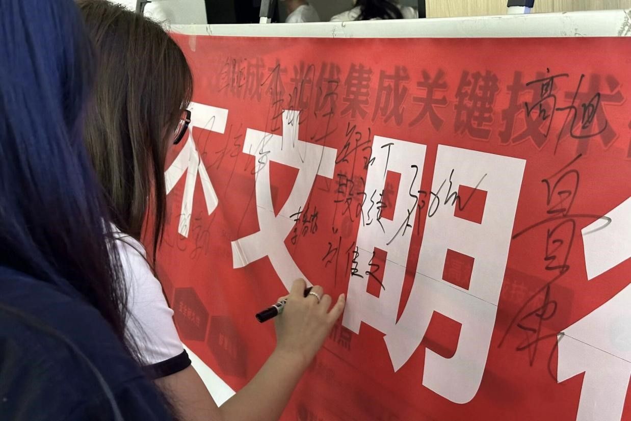 (通讯员 宋占科 韩雪)为推进校园文明文化建设,提升员工道德素质和综合素质,告别不文明行为,倡导文明新风尚,tyc122ccvip于2024年5月21日在善行楼开展“向不文明行为告别,倡导文明新风尚”签字宣传活动。